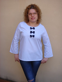 Como veis la blusa no tiene nada , es mas si le quitamos los lacitos es mas bien sosa , pero con un simple detalle lo que cambia el modelo.